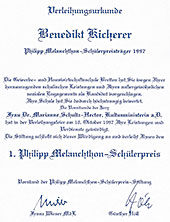 Melanchthon-SchülerpreisPhilipp Melanchthons Leben und Werk und sein Ehrentitel „praeceptor germaniae (Lehrer Deutschlands)“ waren und sind eine besondere Herausforderung an die Schulen und die Schülerinnen und Schüler in Bretten. Senator E.h. Franz Wieser