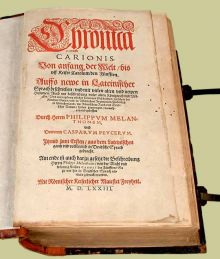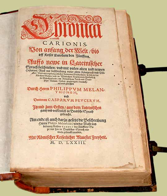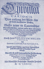 Der Berliner Hofastrologe Johann Carion (1499—1538), ein Tübinger Kommilitone Melanchthons, schickte ihm 1531 das Rohmanuskript einer deutschen Chronik. Melanchthon überarbeitete es und ließ es 1532 drucken. Ab 1555 hielt Melanchthon an der Wittenberger Universität Vorlesungen über Weltgeschichte. Das hieraus erwachsene umfangreiche und oft aufgelegte Werk ist etwas völlig anderes, aber Melanchthon ließ ihm den Namen des längst verstorbenen Carion.
