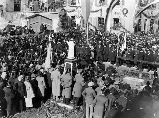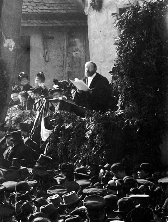 In seiner Weiherede hob Prof. Dr. Müller hervor: "Luther, der Sohn des Bergmanns, Melanchthon, der Sohn des Waffenschmieds, verschieden in ihren natürlichen Anlagen, verschieden in ihrer Entwicklung, aber beide verlangend nach der Speise, die Gott gibt, und darum zu einander gehörig, einander ergänzend, von dem Herrn berufen, zu verkündigen Seine gewaltigen Thaten Seinem Volk".