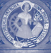 Wappensiegel der philosophischen Fakultät mit der Heiligen Katharina als deren Schutzpatronin.