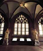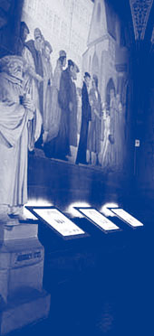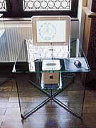 Dabei befindet man sich im Startmenue der Medienstation zunächst im gleichen Raum — allerdings in einem virtuellen Raum, der als 360°-Rundumblick frei navigierbar Informationen über die ansonsten undokumentierten ikonografischen Raumprogramme durch Anklicken sogenannter "Hot-Spots" ermöglicht. In einer Welt der "Erfahrungen aus zweiter Hand", wo die Grenzen zwischen Virtualität und Realität zunehmend verwischen, scheint dieser Versuch, Realität und Authentizität des Museums über den zunächst virtuellen Zugang zu vermitteln, ein interessanter und neuer Ansatz.