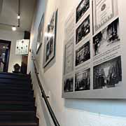 Die mit dem Haus "direkt verbundenen", vor den Wänden des Hauses schwebenden Informationen zur Hausgeschichte sind auf speziell bedruckten eloxierten Aluminium-Tafeln ausgeführt, einer besonders edlen und werthaltigen Technik, die dem hohen handwerklichen Anspruch der Schmuck- und Detailausführungen des Hauses gerecht werden, sich als moderne Informationsträger jedoch auch deutlich von ihm abheben.