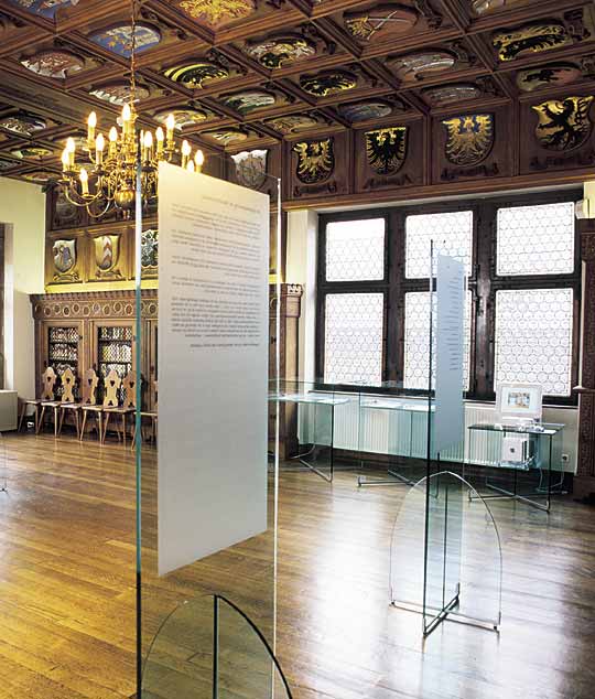 Entsprechend wurden alle didaktischen Mittel, seien es Textträger oder Vitrinen, nahezu ausschließlich auch im konstruktiven Teil als transparente Glaskörper konzipiert und ausgeführt. Auf mattierten Glasflächen befinden sich, quasi freischwebend, die gut lesbaren Informationen.