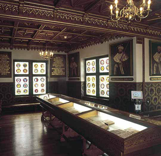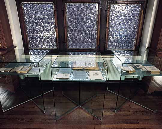 Besondere Sorgfalt wurde den verwendeten Lichtquellen im gesamten Museum beigemessen. Durch die Sonderanfertigung von Spezial-Lampen konnte der bei den Wandgemälden, Büchern und Grafiken besonders zerstörerisch wirkende UV-Anteil im hier verwendeten Lichtspektrum völlig ausgeschlossen werden.