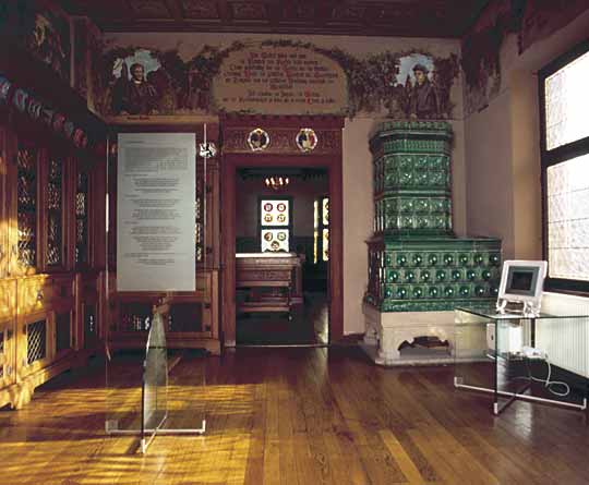 Den reich geschmückten und inhaltsschweren Räumen wurde mit einer eigenständigen modernen Gestaltung begegnet, die genausowenig den heutigen Zeitgeist ihrer Entstehung verleugnet wie das Haus auch selbst als gestalterisches Zeugnis des ausgehenden 19. Jahrhunderts ernst genommen und belassen wurde. Die eingesetzten neuen Didaktiksysteme vermitteln einen eindeutigen Kontrast zu den historischen Räumen und deren historisierender Einrichtung, ohne deren Atmosphäre zu beeinflussen.
