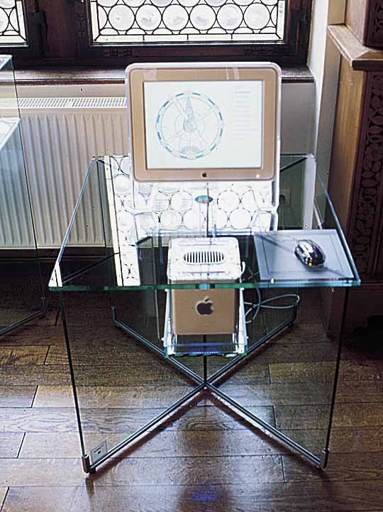 Ähnliches vollzieht sich auf den Bildschirmen der neu konzipierten Medienstationen, wo technisch gesehen ein einzelner Lichtstrahl oder Lichtpunkt Erkenntnis schaffen soll, indem er sich zu Texten, Bildern oder Filmen formt, dabei licht- oder gedankenschnell Verknüpfungen zwischen mehr als 1500 Dateien ermöglicht.