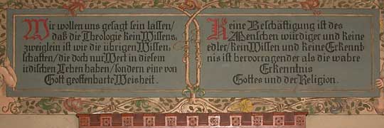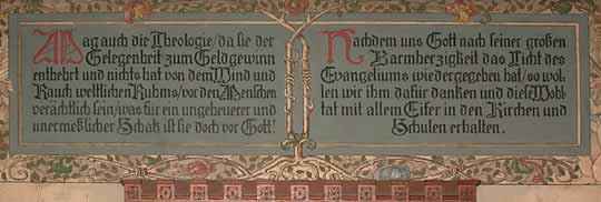 Über dem Mittelschrank ist das Melanchthonwort zu lesen: