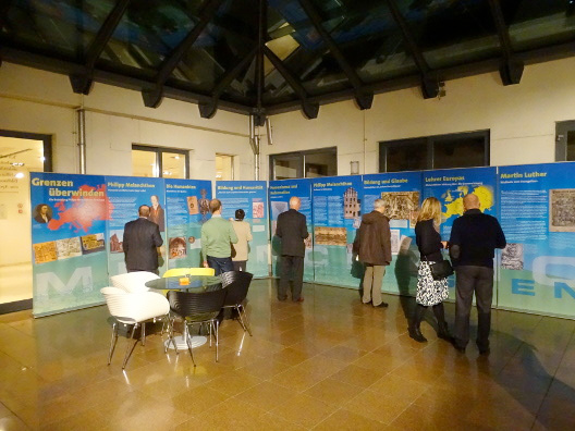 Zur Ausstellungseröffnung begrüßte der stellvertretende Leiter der Landesvertretung, Herr Eyke Peveling, die Gäste. Im Anschluss hielt der Direktor der EMA, Prof. Dr. Günter Frank, die Eröffnungsrede und betonte dabei die Bedeutung Philipp Melanchthons für die Religion und Kultur Europas. Seine Vision sei ein gemeinsames „Haus Europa“ gewesen, und das zu einem Zeitpunkt, als der Kontinent durch rivalisierende Nationalstaaten und mithin durch den Glaubenskrieg als Folge der Reformation auseinander zu fallen drohte. „Davor hatte Melanchthon ausdrücklich gewarnt.“